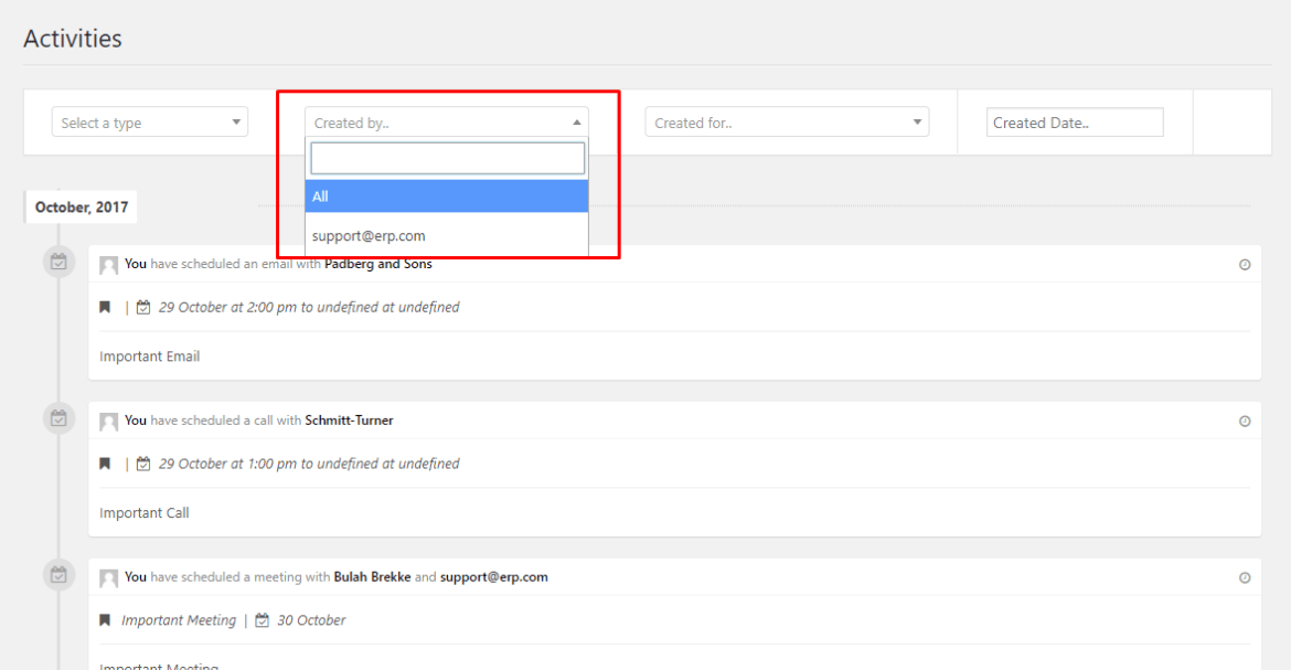 In the Activities Section, if you want to filter the logs you can do that easily using the built-in filtering option.