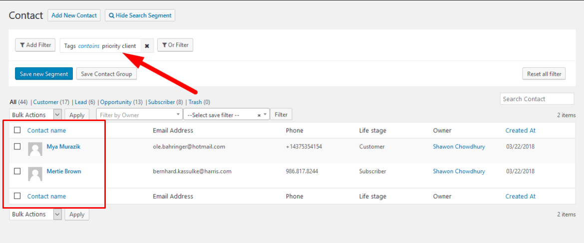 You can choose to save the new search filter by clicking on Save New Segment. Then choose a name for this segment. And now click on Save.